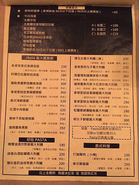 居然還有泰式料理、下午茶跟一些特色料理,